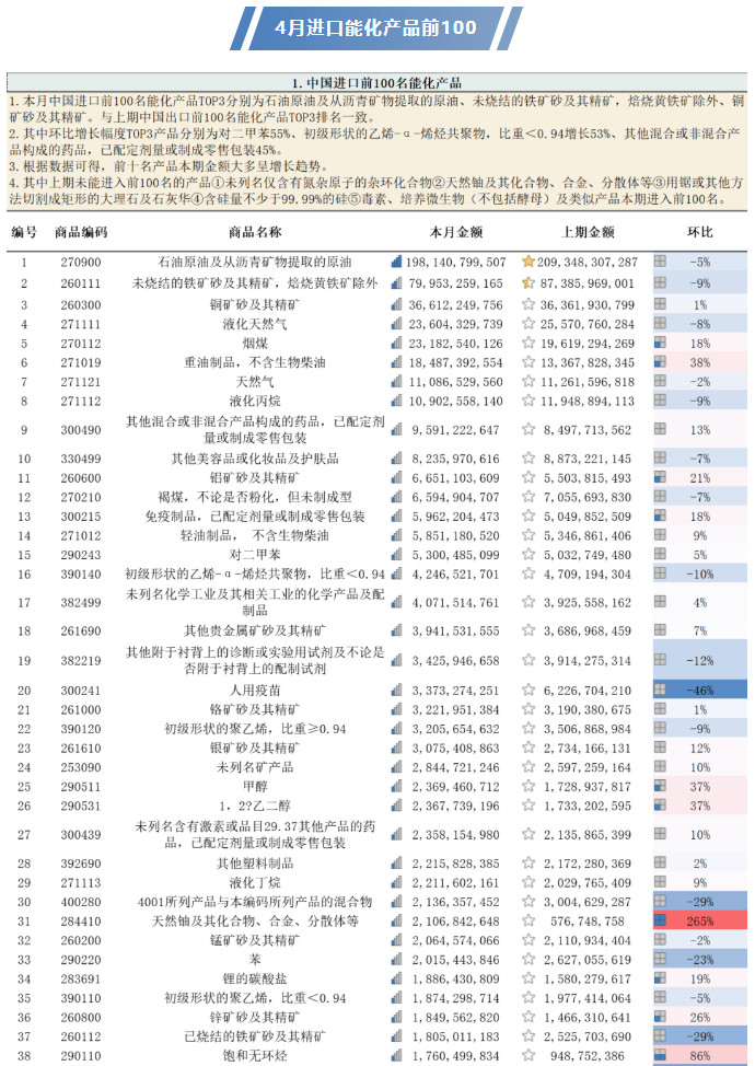 亚洲华兴能源:中国能化产品进出口数据概览-4月